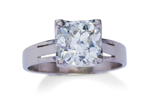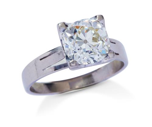 Claw-set with an old mine-cut diamond weighing approximately 3.41 carats, mounted in 18ct white gold and platinum, size R.