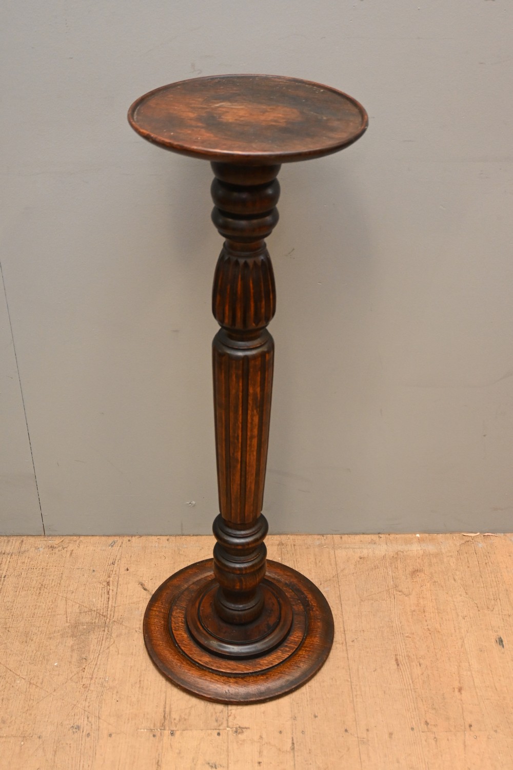 A TURNED HARDWOOD PEDESTAL (A/F) (96H X 31DIA CM) (LEONARD JOEL DELIVERY SIZE: LARGE)