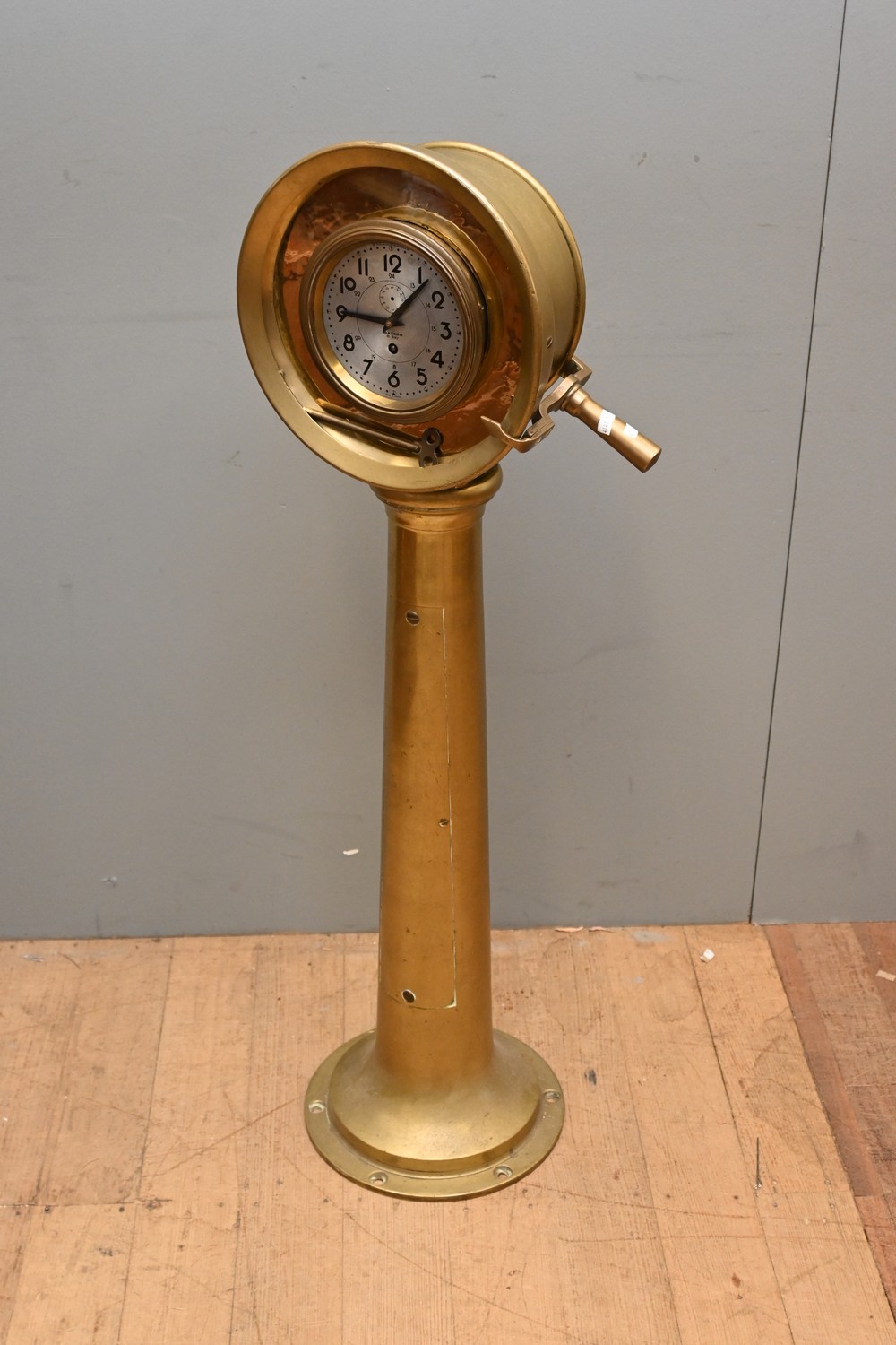 A FRENCH EIGHT DAY BAYARD BRASS SHIP TELEGRAPH MOUNTED CLOCK WITH ORIGINAL KEY (107H X 29W X 25D CM) (PLEASE NOTE THIS HEAVY ITEM MUST BE REMOVED BY CARRIERS AT THE CUSTOMER'S EXPENSE. LEONARD JOEL STAFF CANNOT ASSIST CARRYING THIS ITEM) (X-LARGE ITEM)