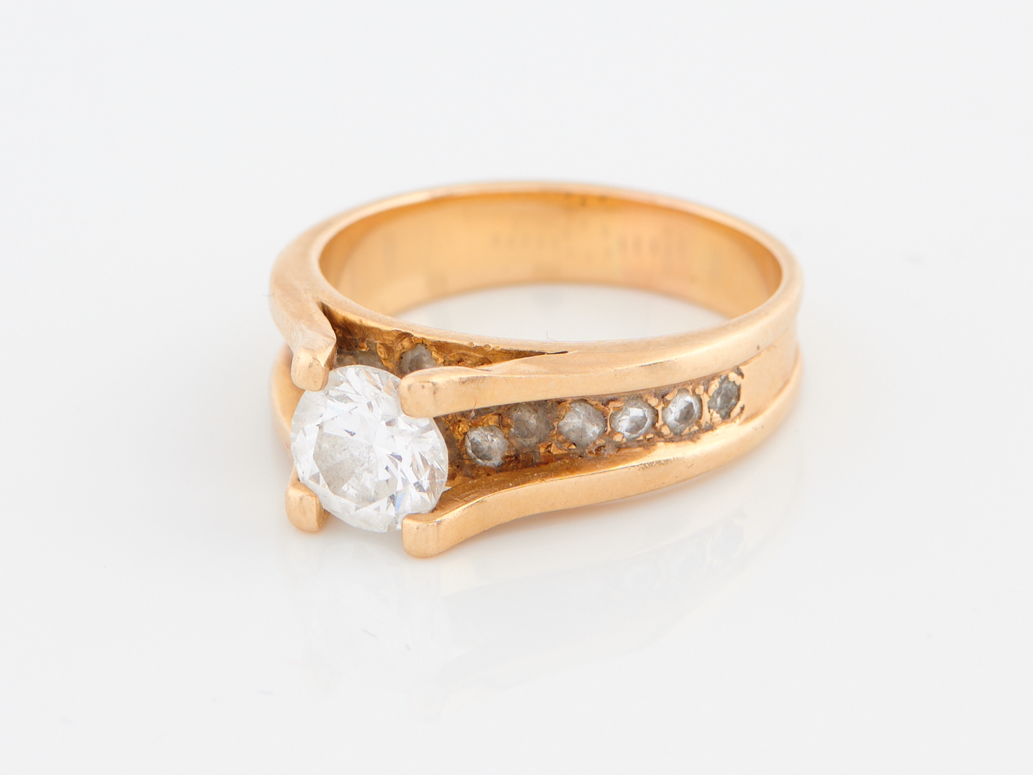A DIAMOND RING IN 18CT GOLD, RING SIZE M, THE DIAMOND OF APPOXIMATELY 0.90CTS (E-F/VS), 5.6GMS