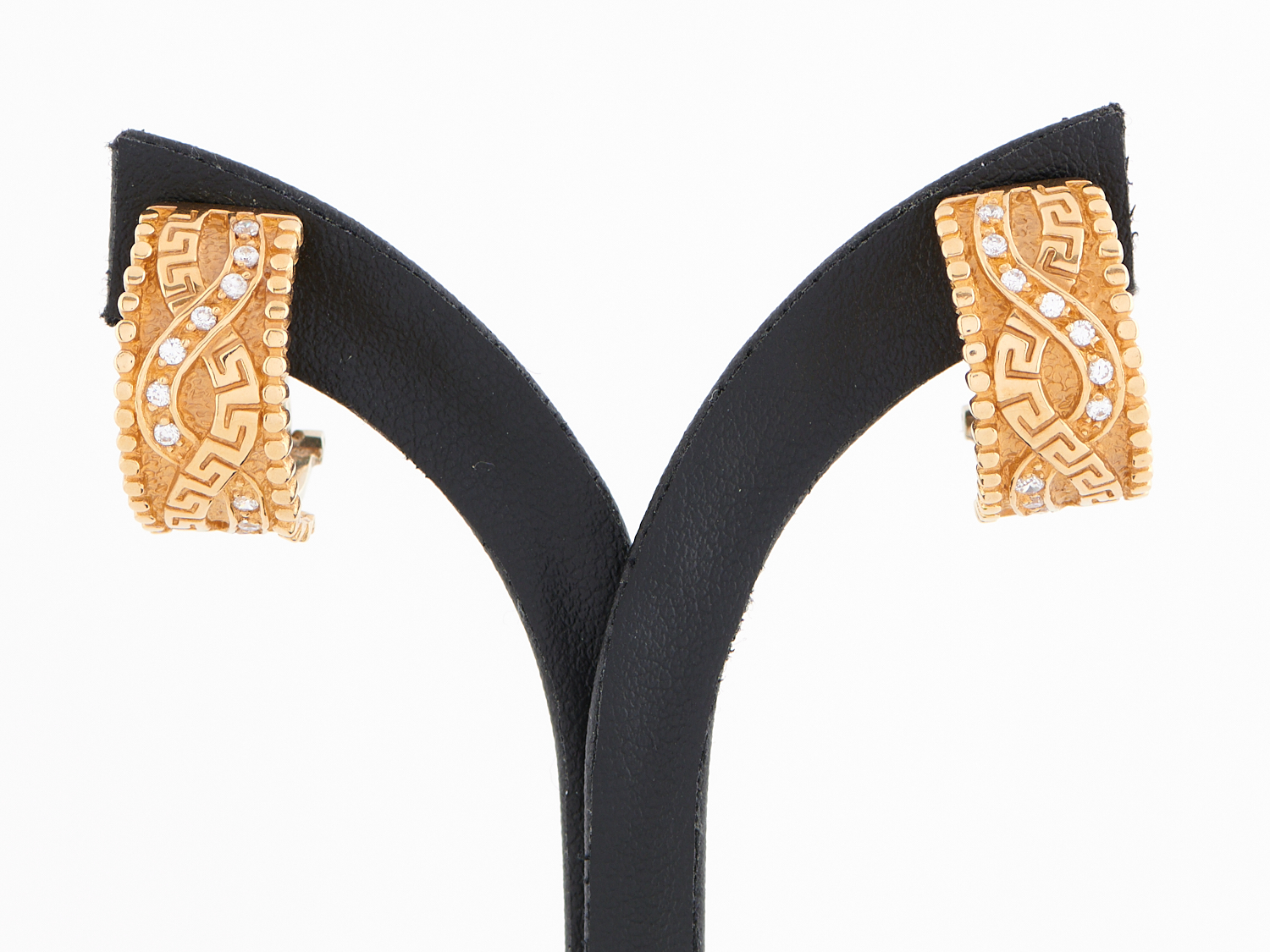 A PAIR OF DIAMOND SET HUGGIE EARRINGS IN 18CT GOLD, THE DIAMONDS TOTALLING 0.30CTS, 12.9GMS, ACCOMPANIED BY VALUATION
