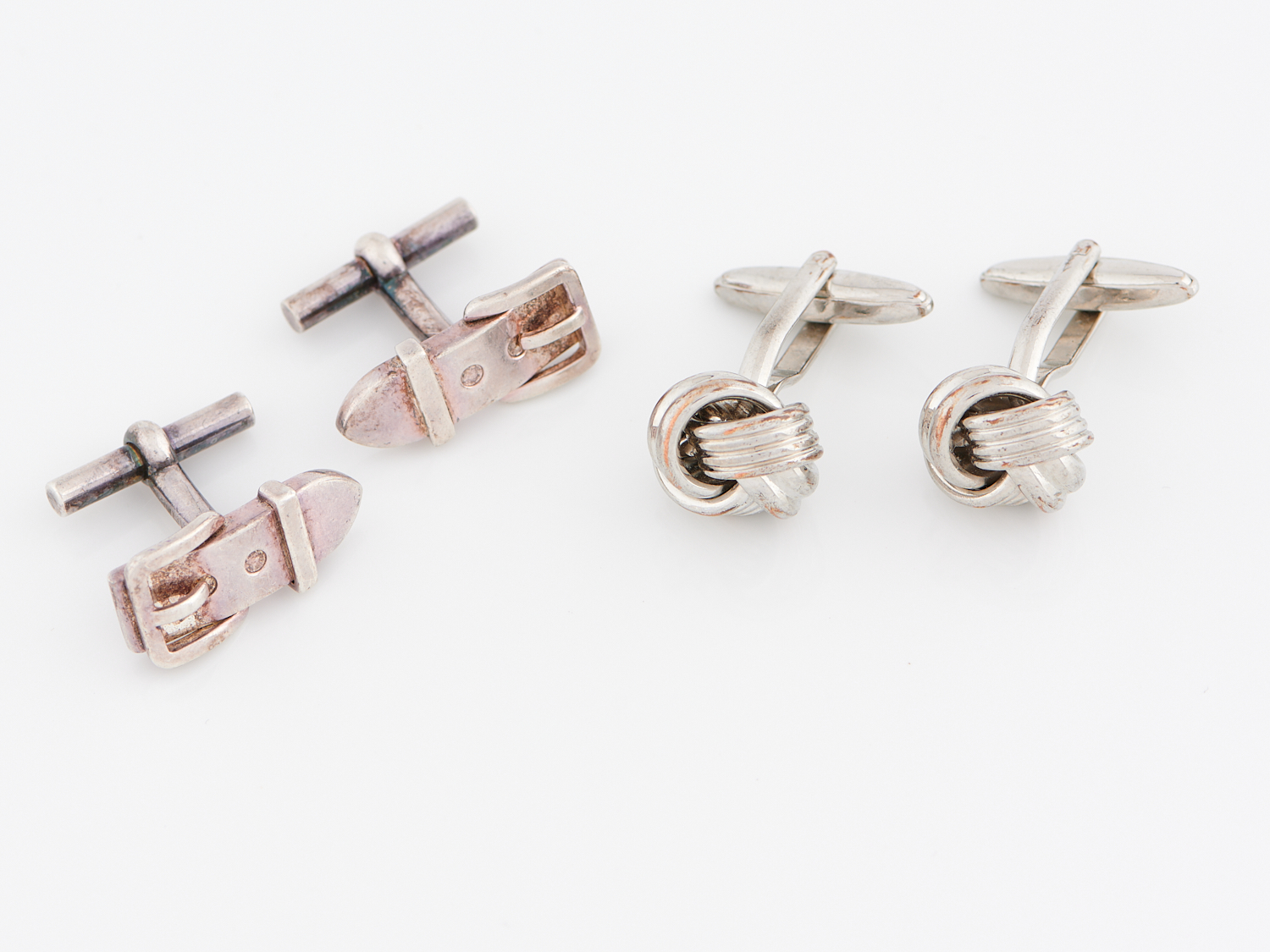 TWO PAIRS OF CUFFLINKS IN STERLING SILVER