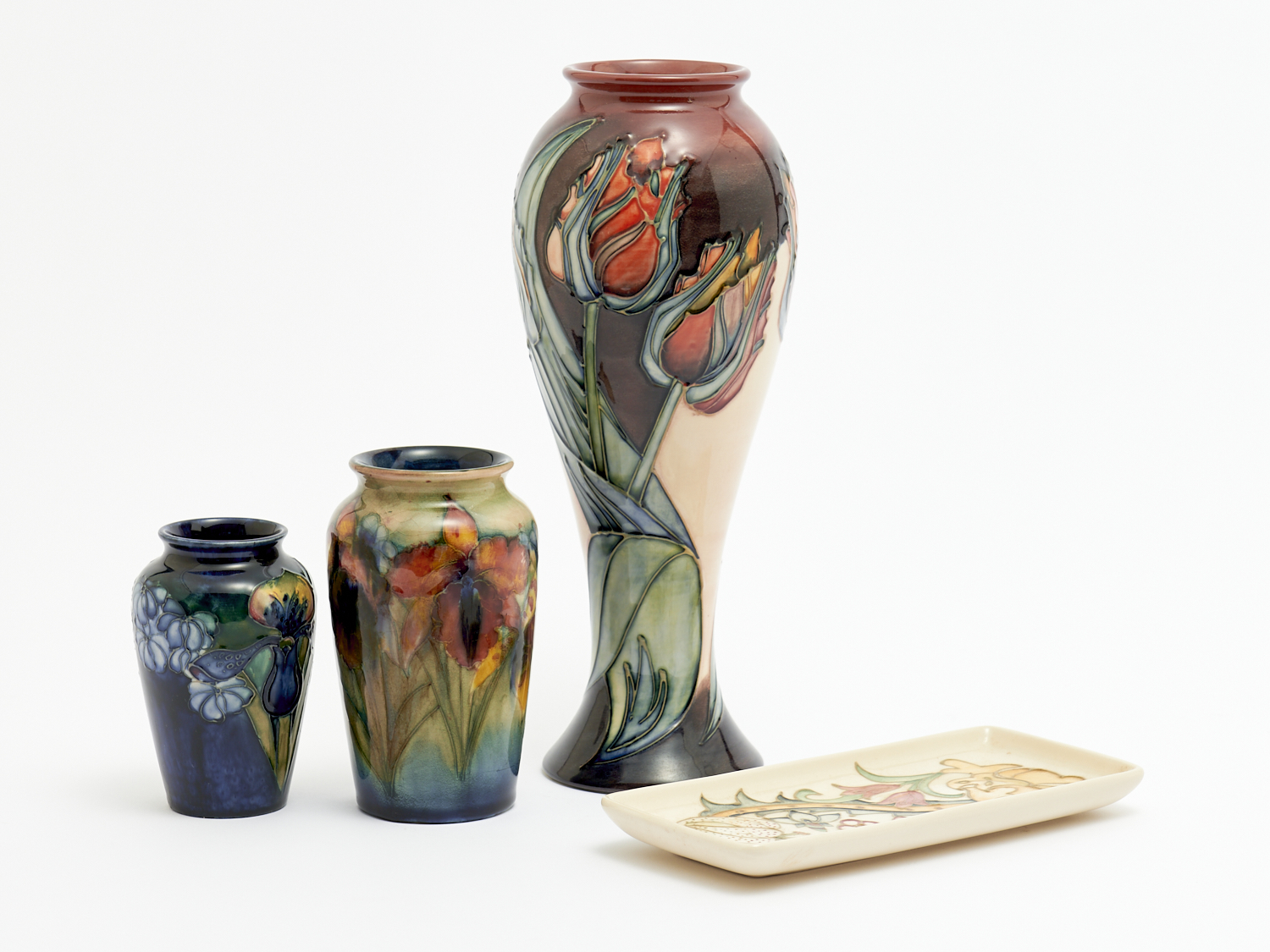 FOUR PIECES OF MOORCROFT H.27CM (TALLEST), LEONARD JOEL LOCAL DELIVERY: SMALL