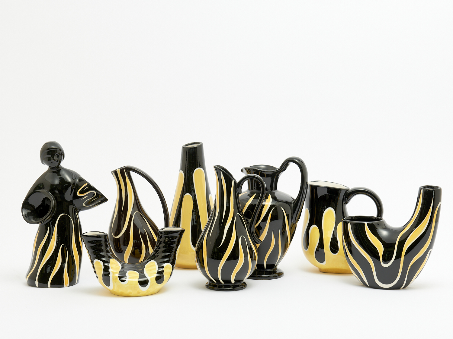 A LARGE COLLECTION OF GERMAN/WEST GERMAN YELLOW AND BLACK CERAMICS H.23CM (TALLEST), LEONARD JOEL LOCAL DELIVERY: SMALL