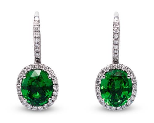 PAIR OF TSAVORITE GARNET AND DIAMOND PENDANT EARRINGS
