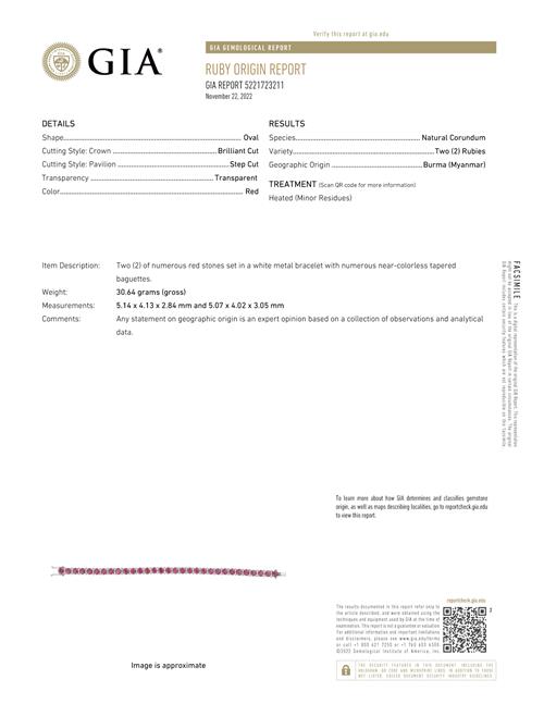 Accompanied by a GIA report numbered 5221723211, dated 22 November 2022, stating that two rubies are natural, with indications of heating (minor residues), of Burma (Myanmar) origin.