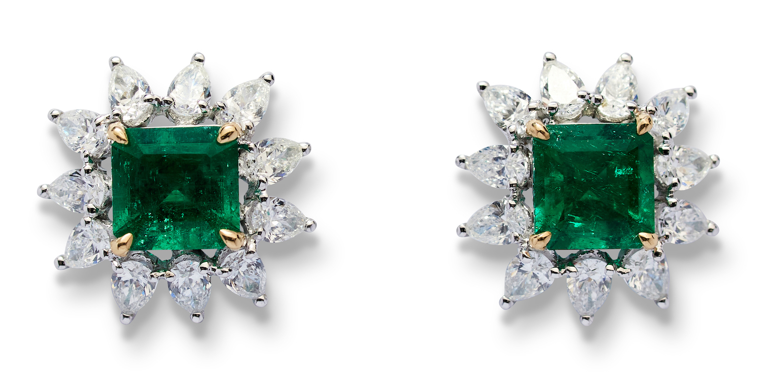 PAIR OF COLOMBIAN EMERALD AND DIAMOND EARRINGS
