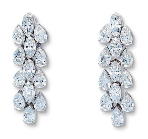 A DAZZLING PAIR OF DIAMOND DROP EARRINGS