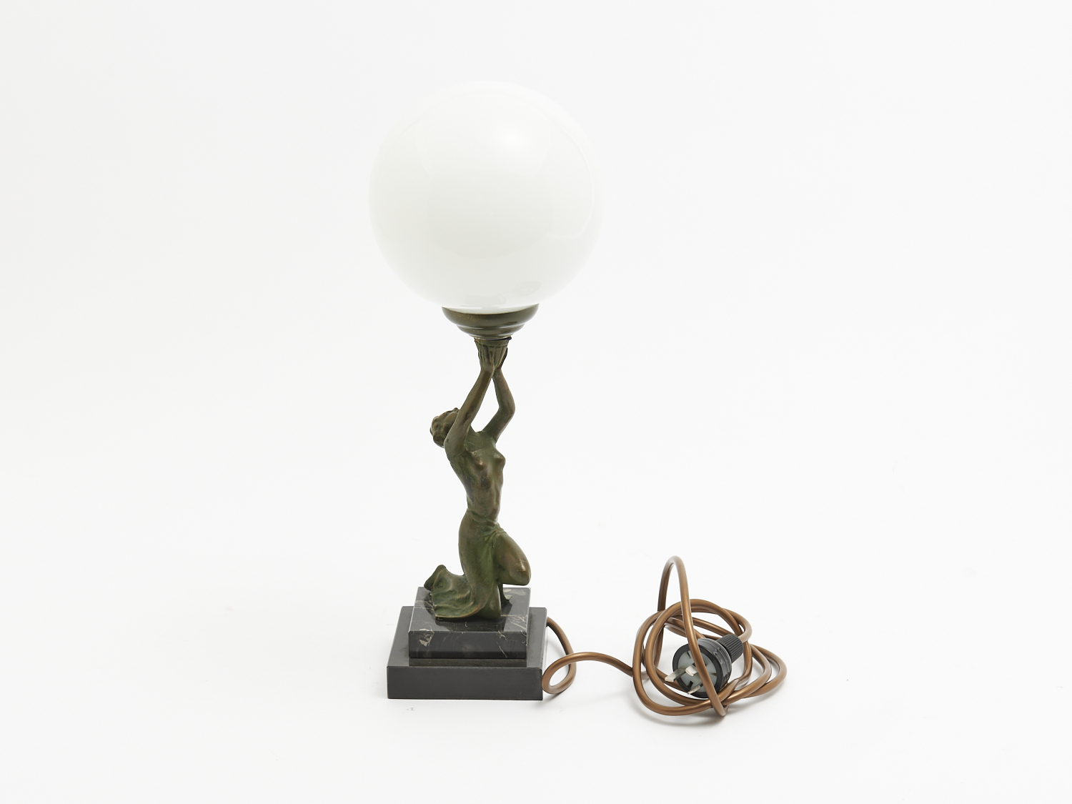 AN ART DECO-STYLE GREEN-PATINATED DIANA LAMP ON BACK MARBLE BASE, LEONARD JOEL LOCAL DELIVERY: SMALL