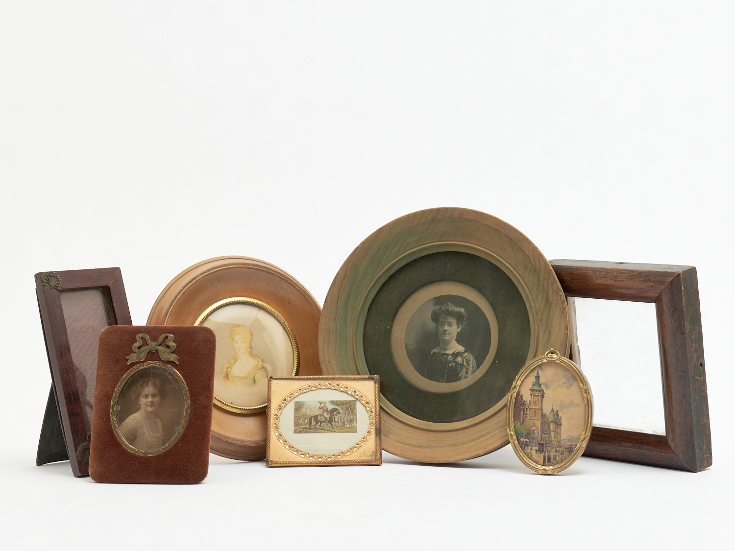 A COLLECTION OF 19TH CENTURY WOODEN AND BRASS PICTURE FRAMES H.19CM (TALLEST), LEONARD JOEL LOCAL DELIVERY: MEDIUM