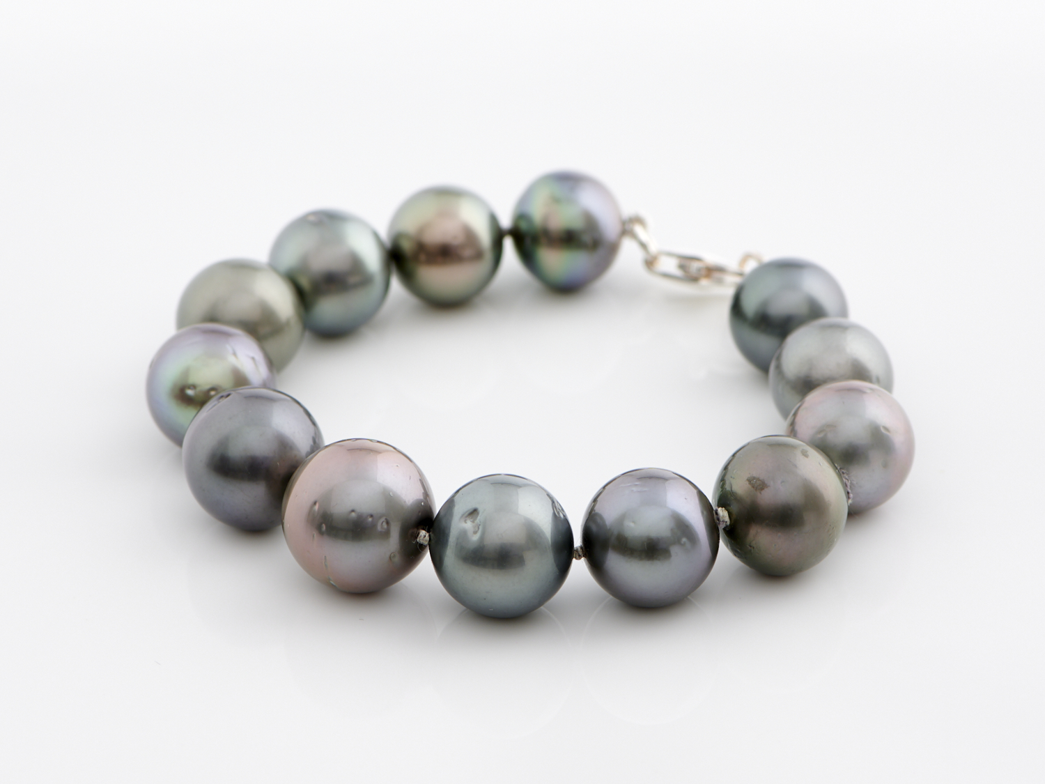A GRADUATED TAHITIAN PEARL BRACELET TO A SILVER CLASP, APPOXIMATELY 80MM