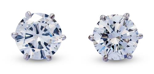The brilliant-cut diamonds weighing 3.01 carats and 3.04 carats respectively, are claw-set, mounted in 18ct white gold, post and scroll fittings.