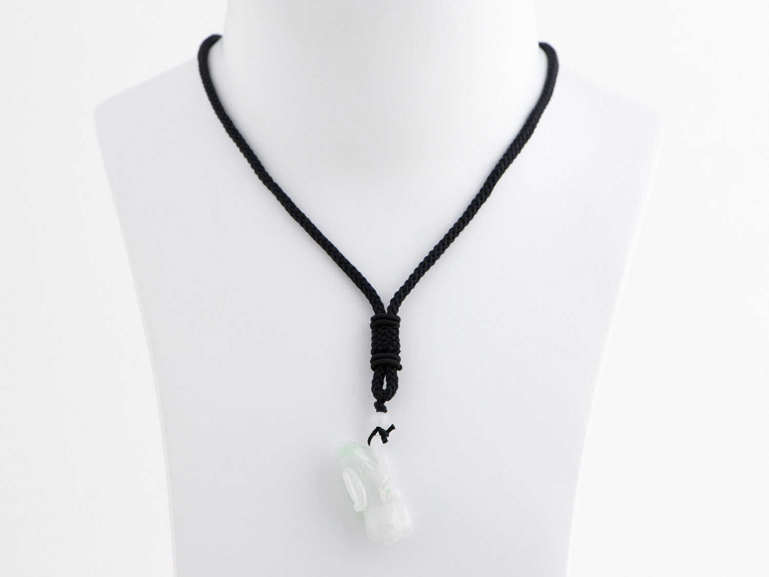 A JADEITE RABBIT PENDANT, HUNG FROM A BLACK CORD, ACCOMPANIED BY IDENTIFICATION CERTIFICATE, 9.57GMS