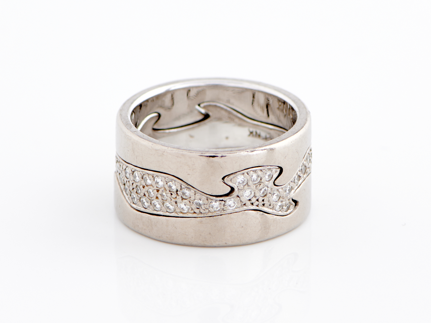 GEORG JENSEN, A THREE PIECE DIAMOND SET FUSION RING IN 18CT WHITE GOLD, RING SIZE L, 14.7GMS