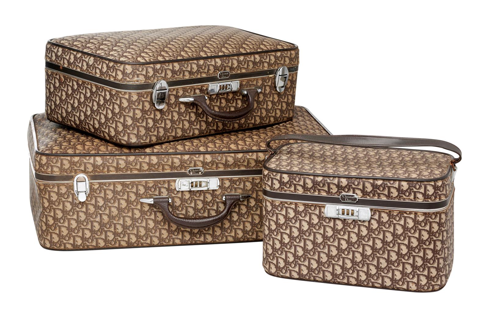 BUYERS NOTE: Please expect imperfections. Whilst the condition of this suite of luggage is good, expect fragile handles, some tears, rust on metal and other imperfections due to use and age. Lock Jammed on larger case.