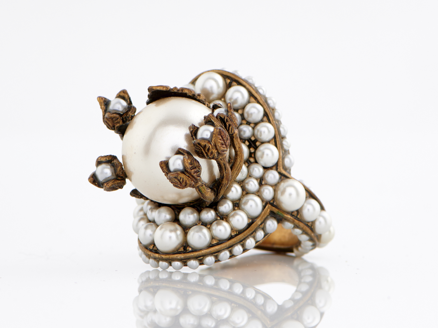 GUCCI, A FAUX PEARL RING IN GOLD TONE METAL, RING SIZE M