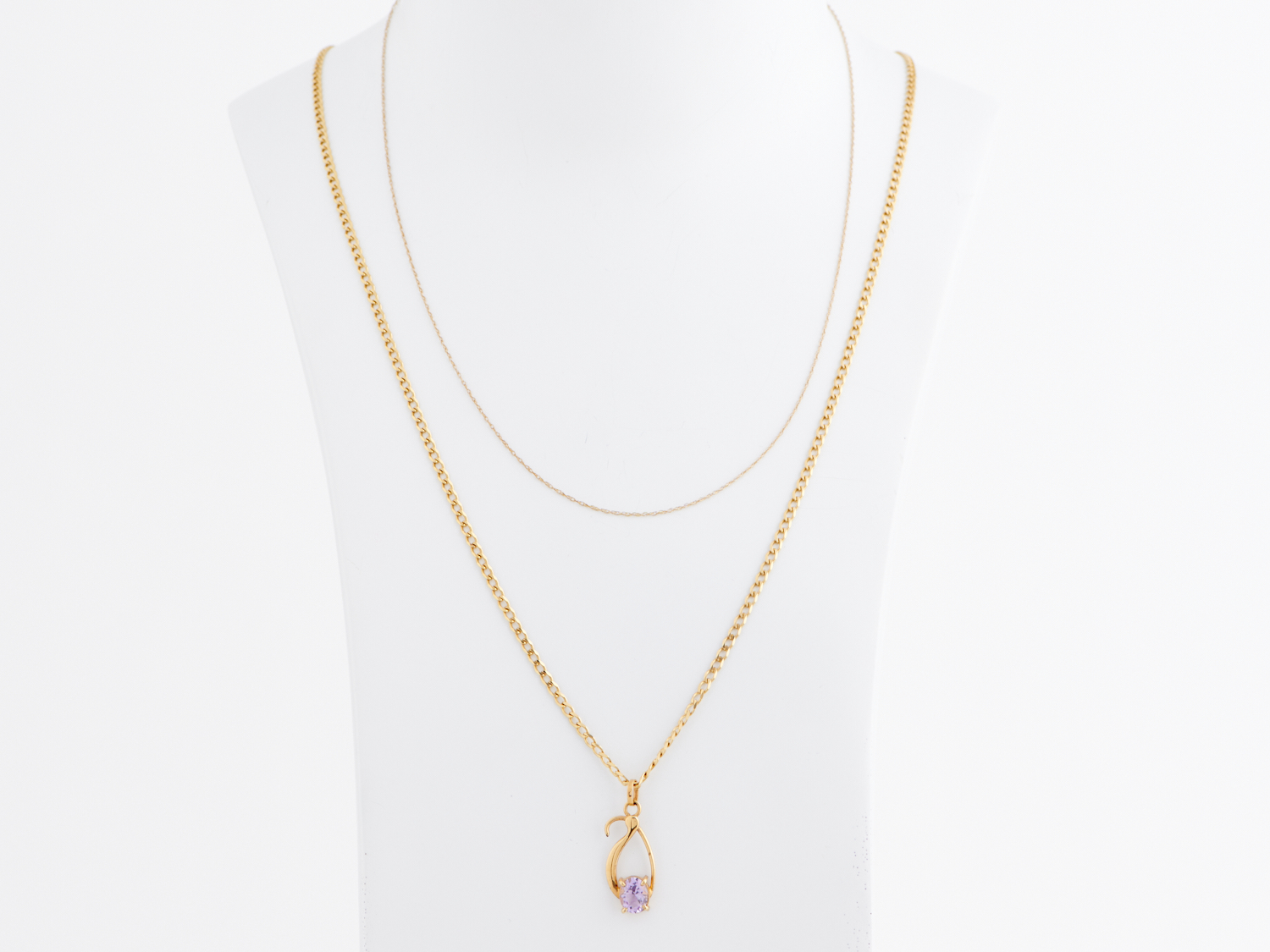 TWO CHAINS IN 9CT GOLD, COMPRISING A CURB LINK CHAIN AND FINE TRACE CHAIN, 6.7GMS