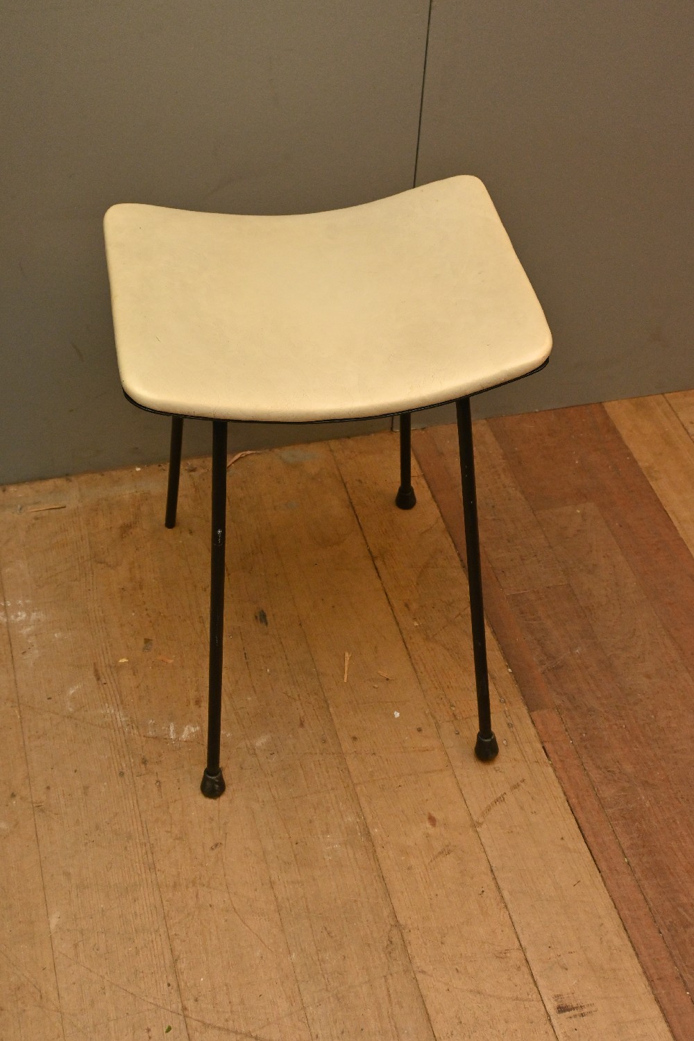 A VINTAGE VINYL TOPPED STOOL (A/F) (50H X 37W X 30D CM) (LEONARD JOEL DELIVERY SIZE: MEDIUM)
