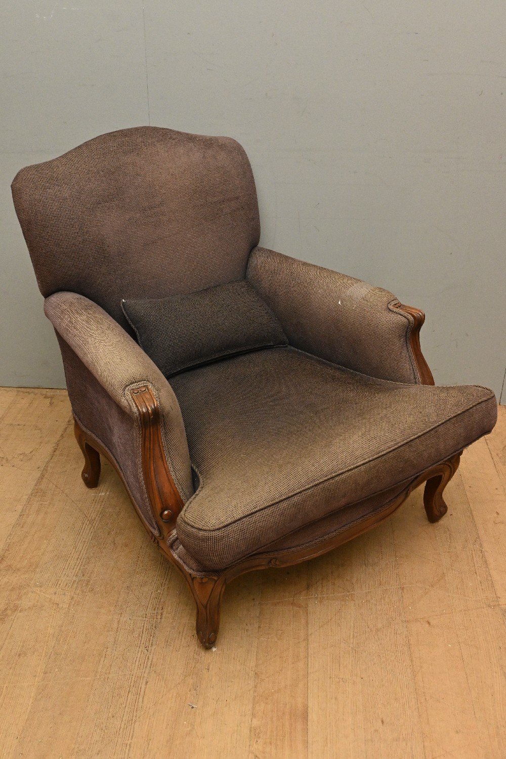 A BEAUDELAIRE BERGERE FROM GAUDION FURNITURE (A/F) (90H X 84W X 80D CM) (PLEASE NOTE THIS HEAVY ITEM MUST BE REMOVED BY CARRIERS AT THE CUSTOMER'S EXPENSE. LEONARD JOEL STAFF CANNOT ASSIST CARRYING THIS ITEM) (X-LARGE ITEM)