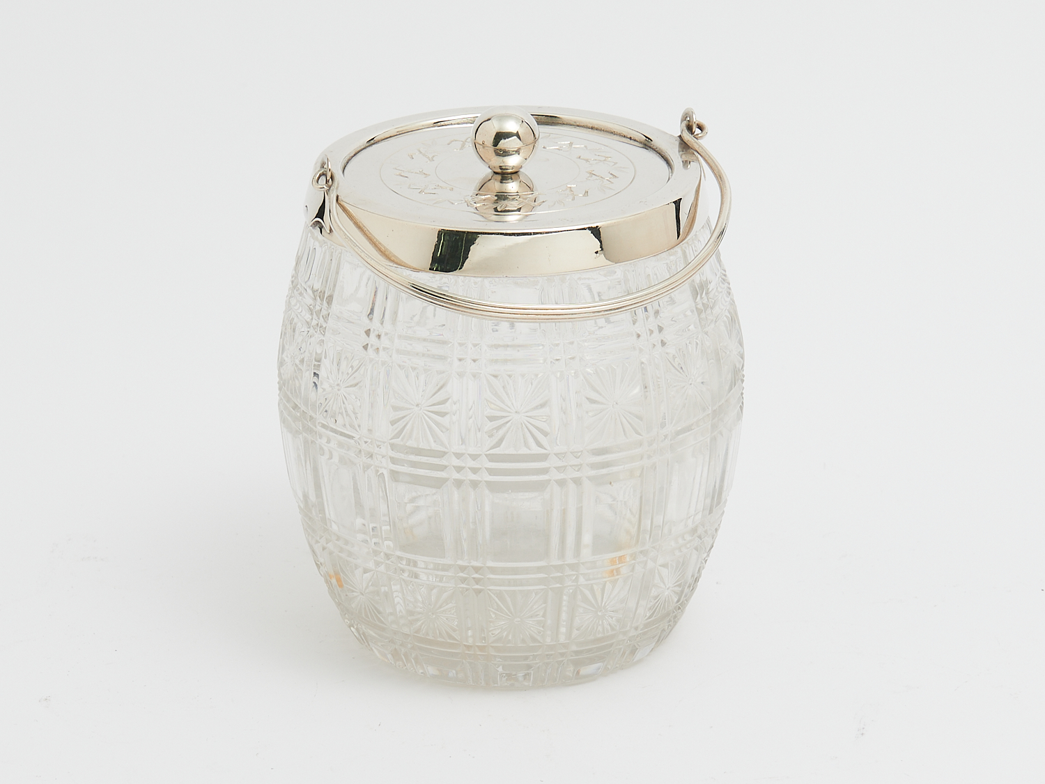 A SILVER PLATE LIFT-TOP BISCUIT BARREL BY ASHBERRY & SON SHEFFIELD H.16.5CM, LEONARD JOEL LOCAL DELIVERY: SMALL