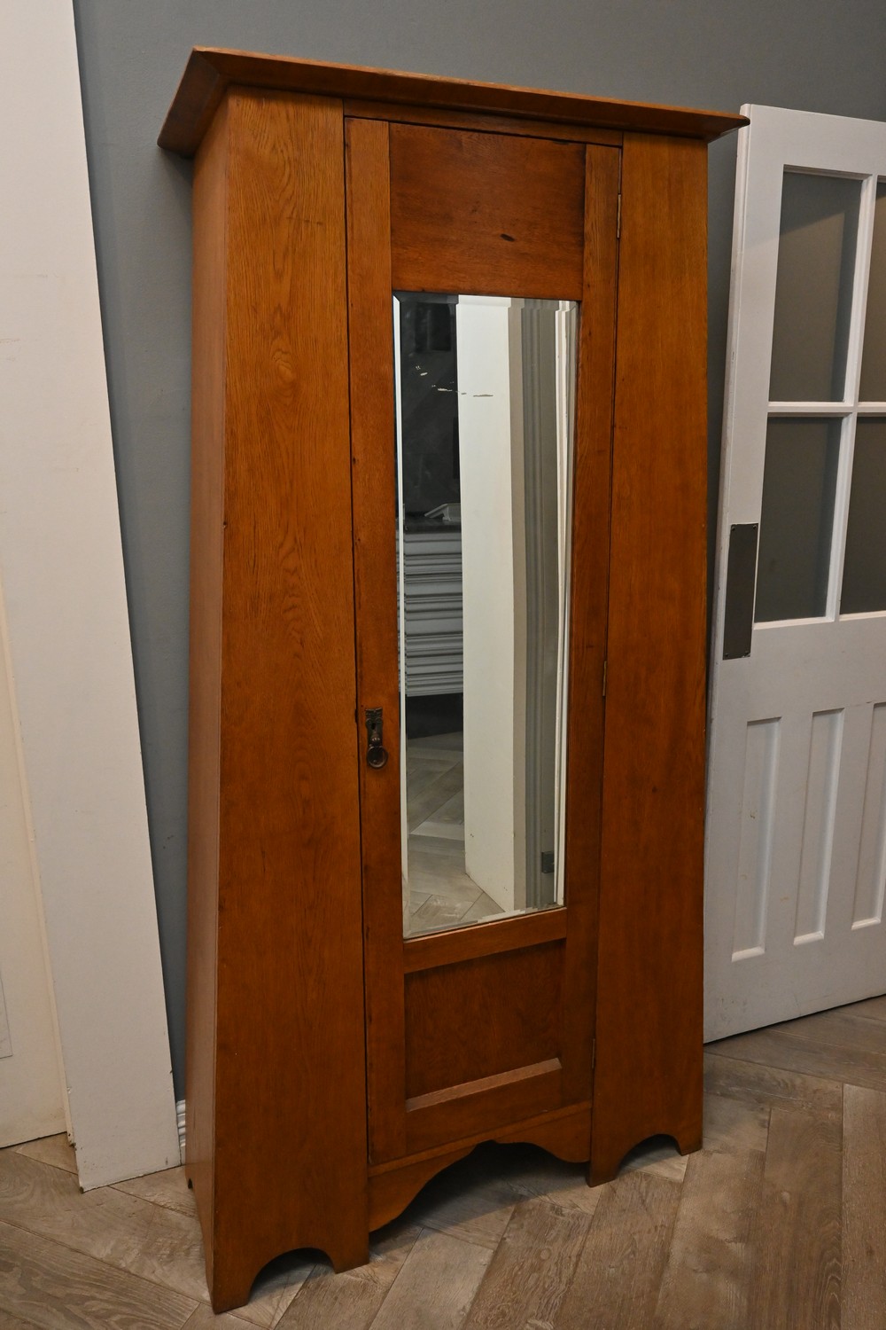 A JACOBEAN STYLE MIRROR FRONTED WARDROBE (198H X 103W X 37D CM) (PLEASE NOTE THIS HEAVY ITEM MUST BE REMOVED BY CARRIERS AT THE CUSTOMER'S EXPENSE. LEONARD JOEL STAFF CANNOT ASSIST CARRYING THIS ITEM) (X-LARGE ITEM)