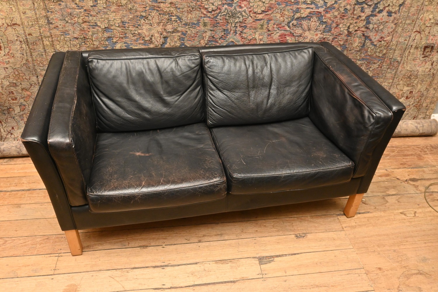 A DANISH LEATHER TWO SEATER SOFA (A/F) (76H X 150W X 70D CM) (PLEASE NOTE THIS HEAVY ITEM MUST BE REMOVED BY CARRIERS AT THE CUSTOMER'S EXPENSE. LEONARD JOEL STAFF CANNOT ASSIST CARRYING THIS ITEM) (X-LARGE ITEM)