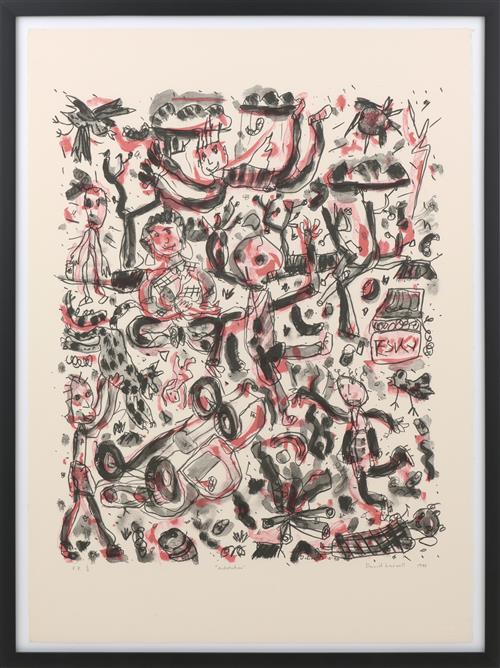 SIDNEY NOLAN (1917-1992) Kelly III 1990 Comprising: (i) By the River; (ii) River Bank; (iii) Landscape; (iv) Kelly and Policeman I;...