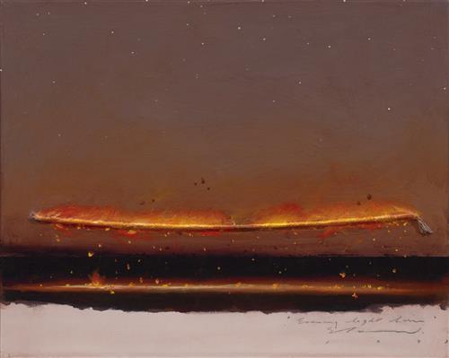 signed, titled and dated lower right: 'Evening Light Line'/ Storrier/ 1993