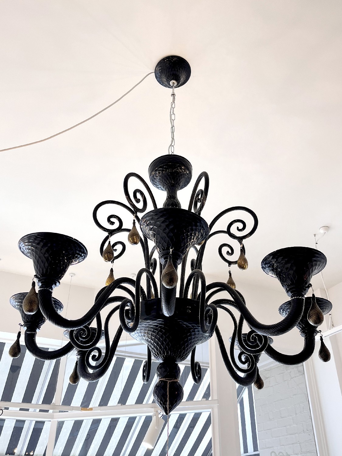 A MURANO PASTORALE NERO CHANDELIER, CIRCA 1970'S ( (PLEASE NOTE THIS HEAVY ITEM MUST BE REMOVED BY CARRIERS AT THE CUSTOMER'S EXPENSE. LEONARD JOEL STAFF CANNOT ASSIST CARRYING THIS ITEM) (X-LARGE ITEM)