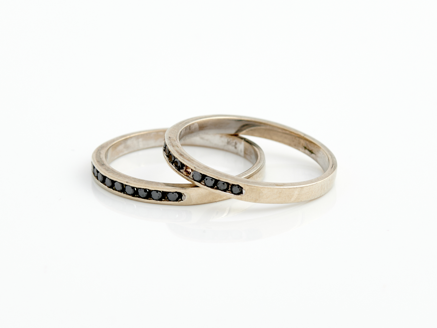 TWO BLACK DIAMOND SET BAND RINGS IN 9CT WHITE GOLD, RING SIZE M