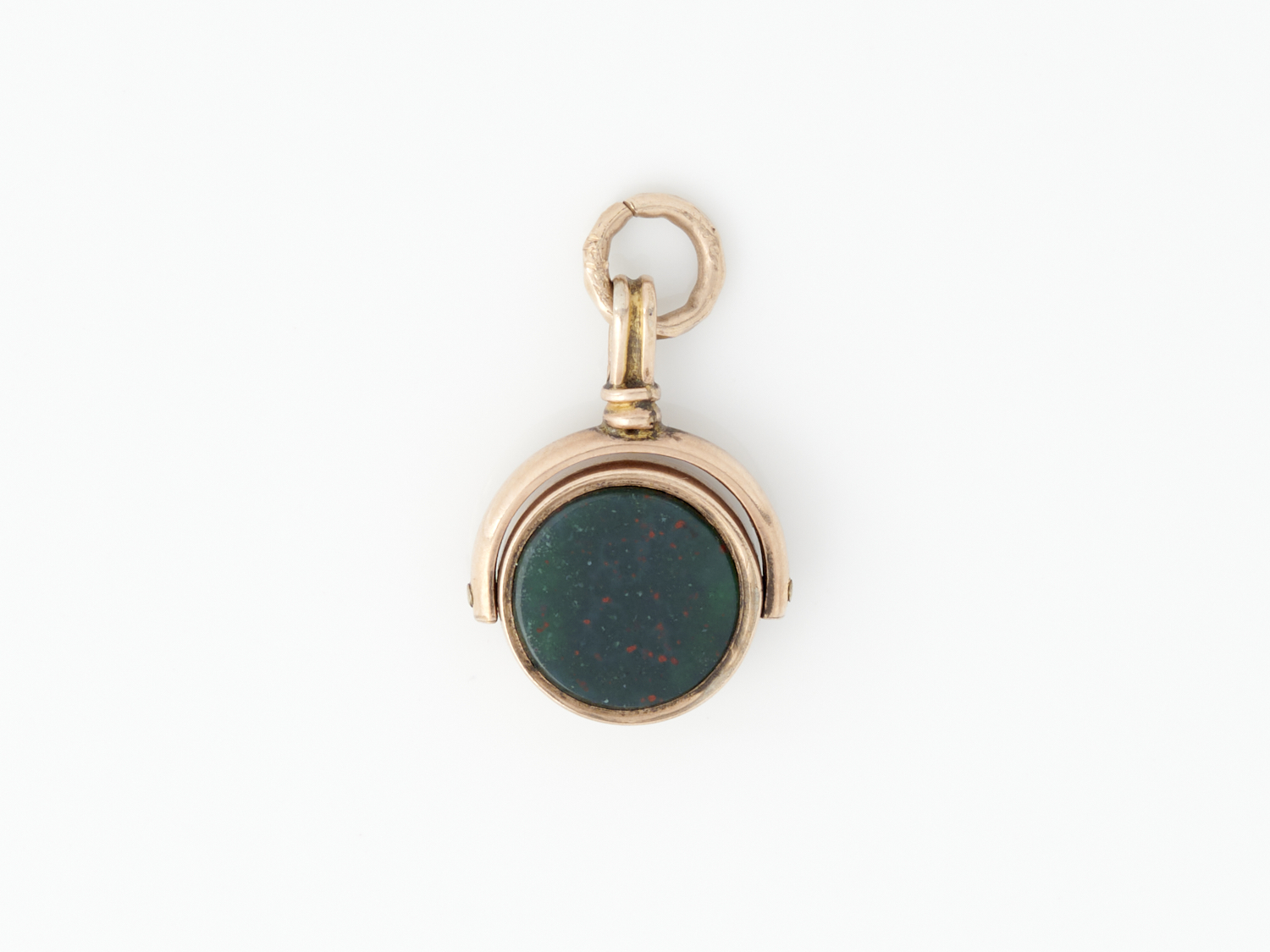 AN ANTIQUE BLOODSTONE AND SARDONYX SPINNER IN 9CT GOLD