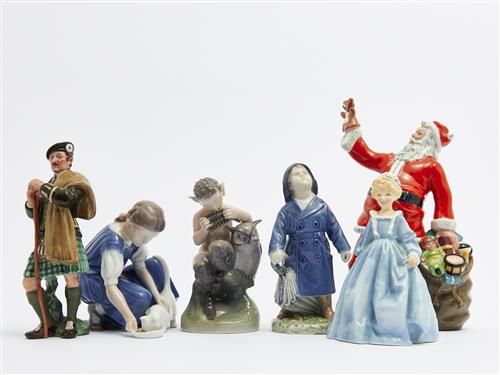 SIX PORCELAIN FIGURES INCLUDING ROYAL WORCESTER, ROYAL COPENHAGEN, AND ROYAL DOULTON (LOSS TO FAWN'S EAR) H.25CM (TALLEST), LEONARD JOEL LOCAL DELIVERY: MEDIUM