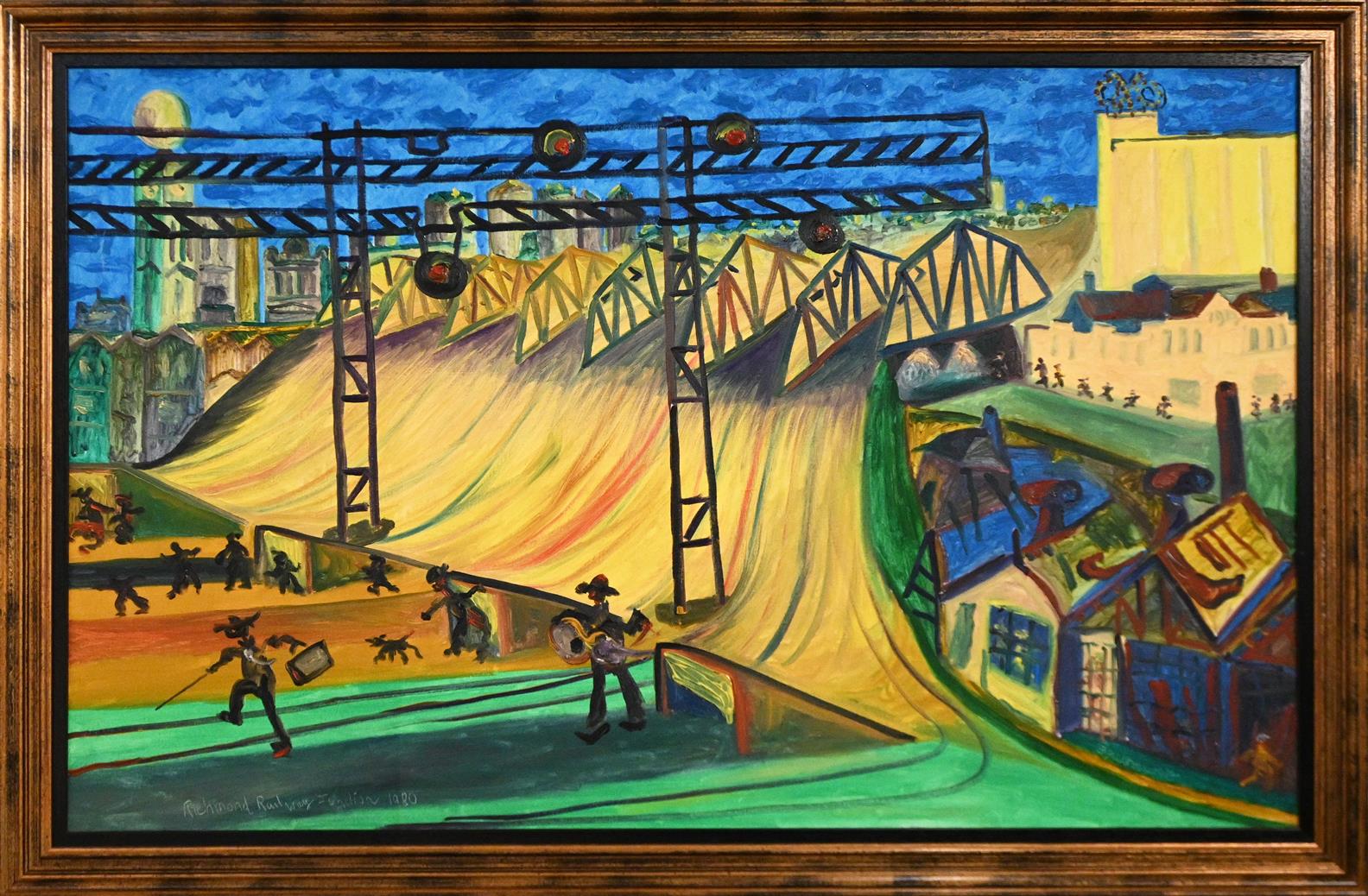 HERMAN PEKEL, PUNT ROAD 2019, OIL ON BOARD, SIGNED LOWER LEFT 78.5 X 93.5CM, FRAME SIZE: 99 X 84CM