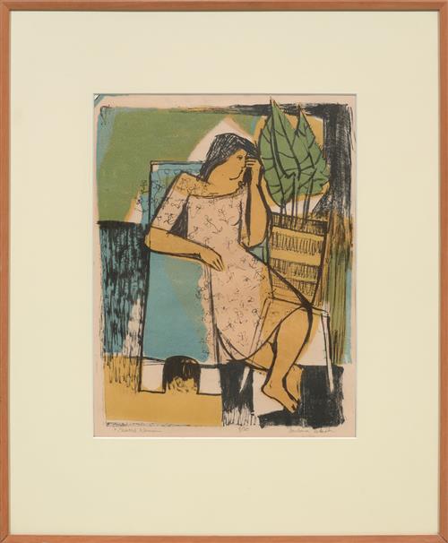"In 1950 Brash travelled to Europe with friend and fellow artist Dorothy Braund. ‘Once overseas, her passion was to see all the Masaccio' Braund has recalled, highlighting Brash's special interest in the pioneering work of the early Renaissance painter: ‘[s]he was vitally interested in the relationship of figures to space, subordinating the clothing of figures to a sweeping rhythm of drapery to flow within the constructed cores of the composition."