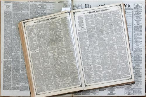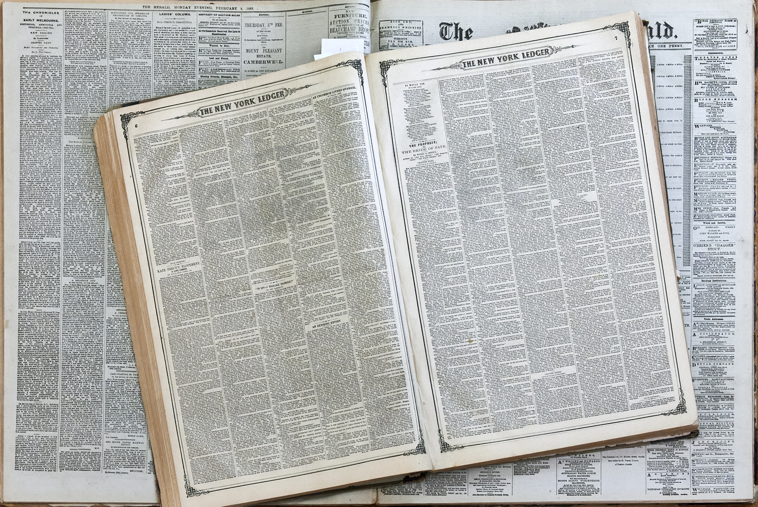 A VOLUME COMRISING SIX MONTHS OF THE 1885 MELBOURNE HERALD INCLUDING REPORTS OF NSW CONTINGENT TO SUDAN FIRST TIME AUSTRALIAN SOLDIERS SERVED OVERSEAS AND A VOLUME OF THE NEWYORK LEDGER OCT 1868- SEPT 1870, LEONARD JOEL LOCAL DELIVERY: MEDIUM