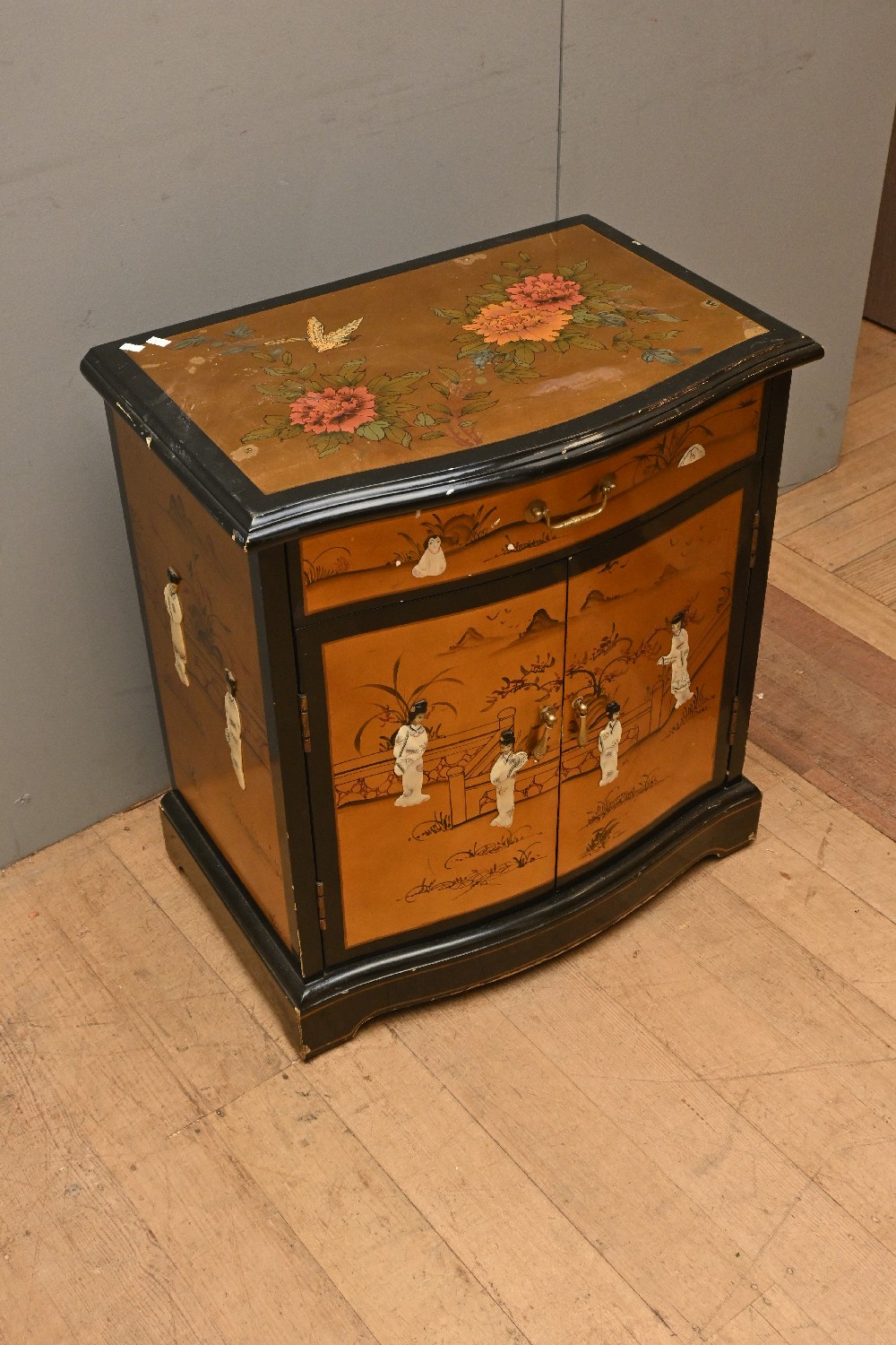 A CHINESE PAINTED TWO DOOR BEDSIDE (A/F) (66H X 62W X 40D CM) (LEONARD JOEL DELIVERY SIZE: LARGE)