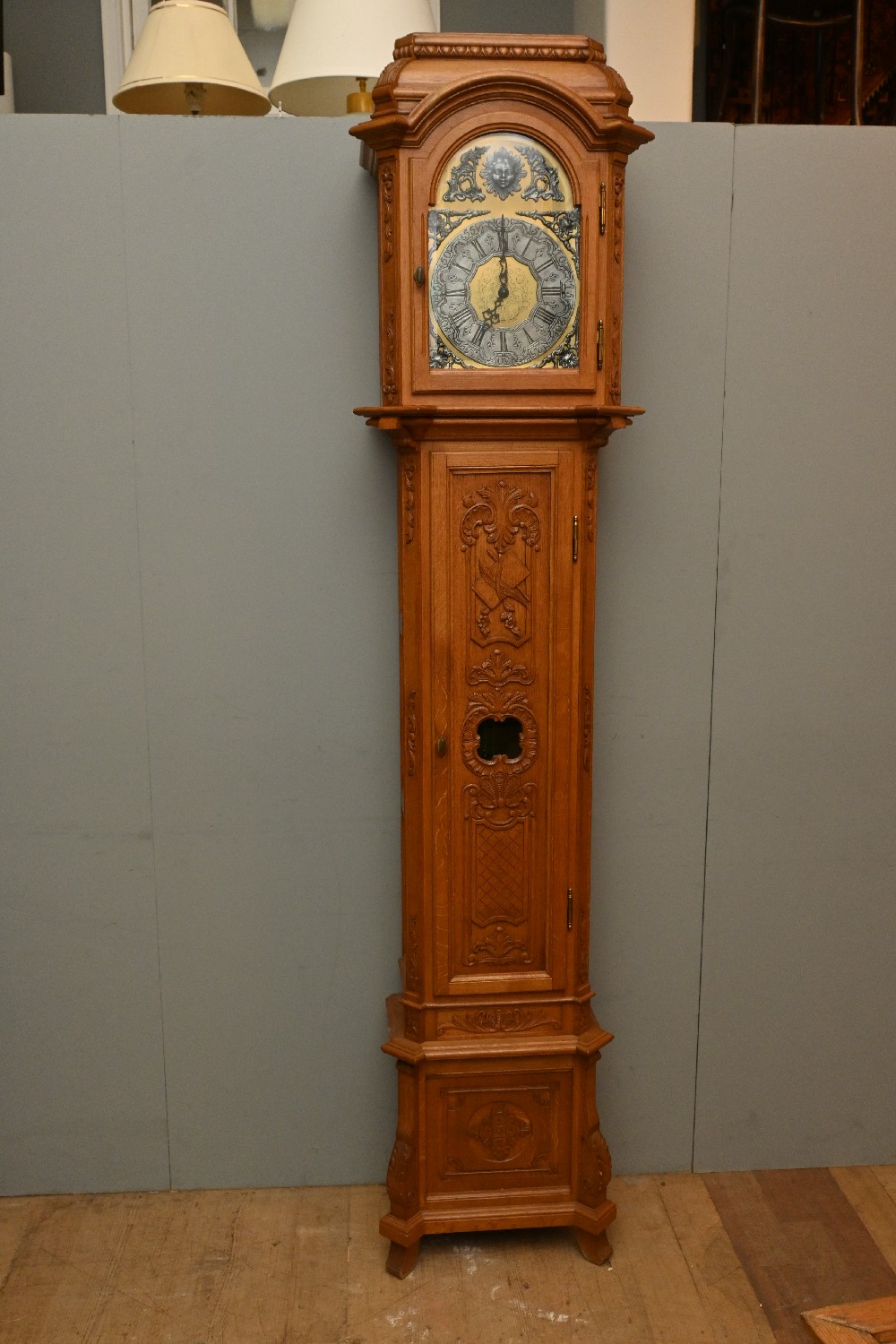 AFRENCH CARVED WALNUT GRANDFATHER CLOCK (A/F) (215H X 50W X 30D CM) (PLEASE NOTE THIS HEAVY ITEM MUST BE REMOVED BY CARRIERS AT THE CUSTOMER'S EXPENSE. LEONARD JOEL STAFF CANNOT ASSIST CARRYING THIS ITEM) (X-LARGE ITEM)
