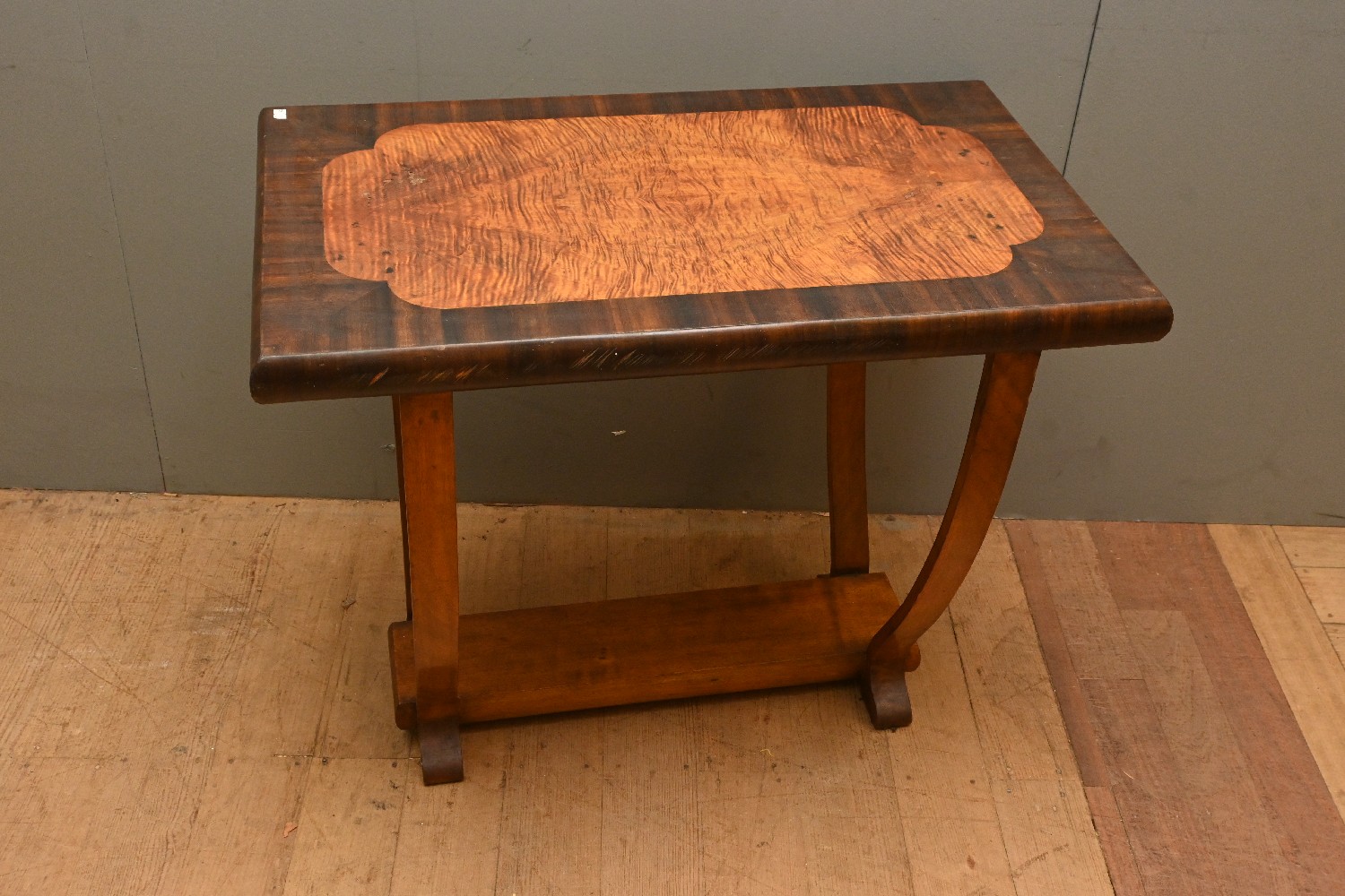 AN ART DECO INLAID WOOD OCCASIONAL TABLE (A/F) (64H X 80W X 49D CM) (LEONARD JOEL DELIVERY SIZE: LARGE)