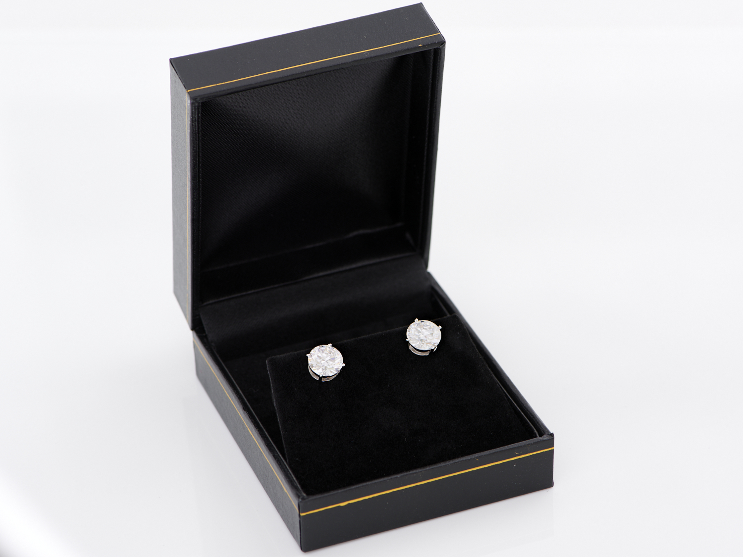 A PAIR OF MOISSANITE CLAW-SET STUDS, IN 14CT WHITE GOLD, THE MOISSANITES OF 3.00CT EACH, ACCOMPANIED BY GRA CERTIFICATE