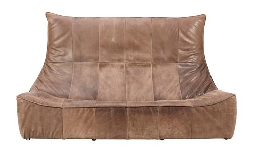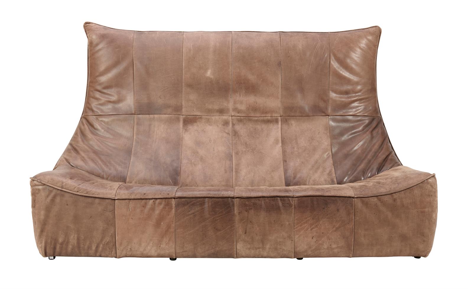 Marks and surface scratches present throughout, all consistent with the age and previous use of the sofa. Signs of ageing and wear to leather. No splits or rips to the leather or to any of the stitching. The sofa is structurally sound and comfortable. No major losses. Overall in very good vintage condition.