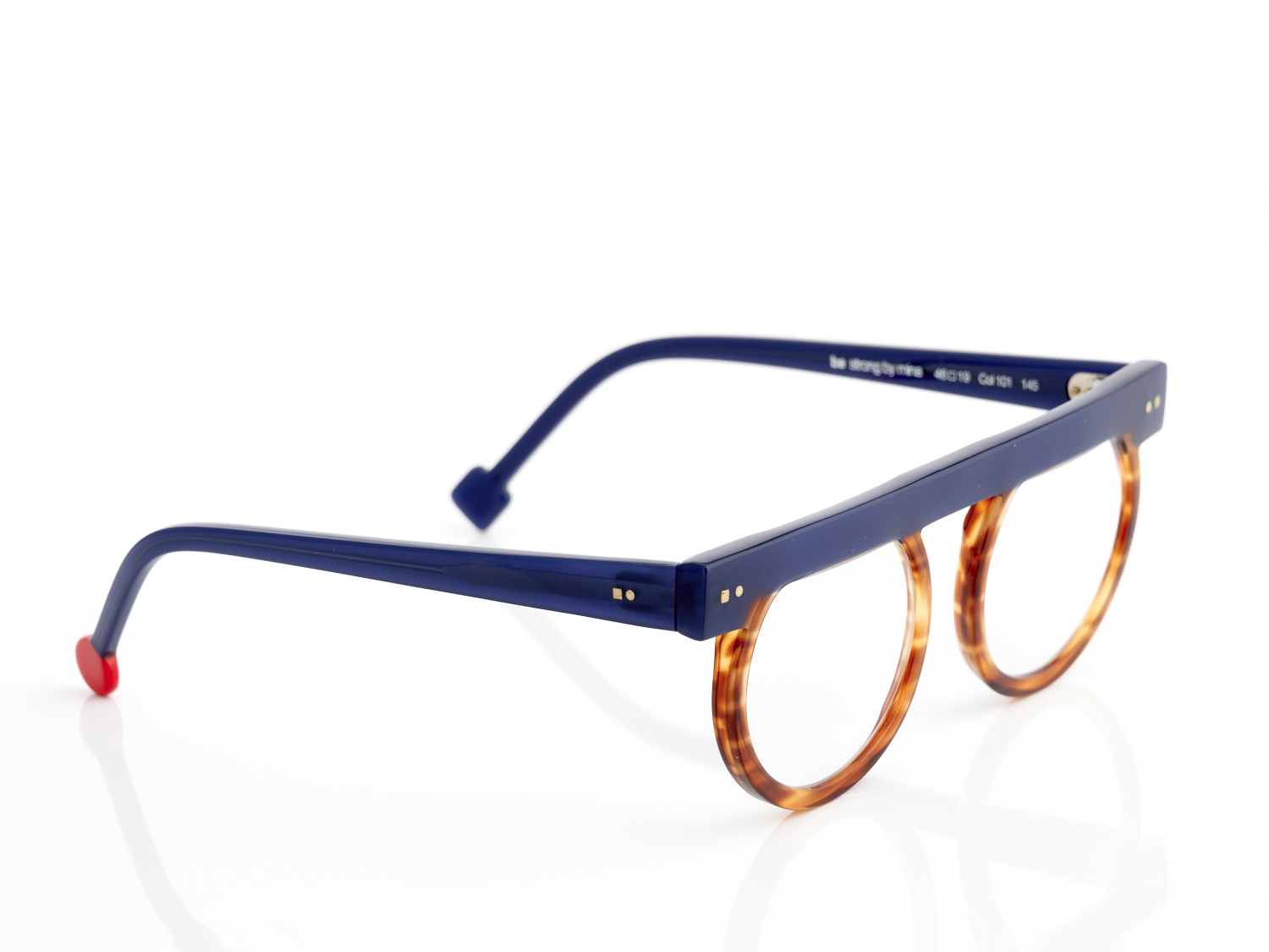 SABINE BE. A PAIR OF FRENCH OPTICAL FRAMES IN NAVY, TORTOISE AND RED COMPOSITE, BOXED