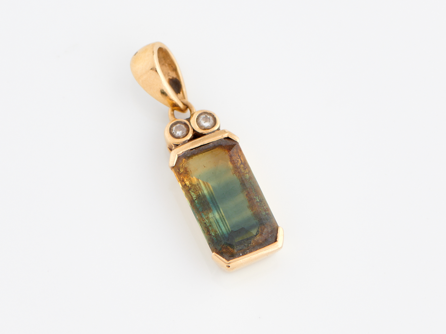A BANDED SAPPHIRE PENDANT IN 18CT GOLD, SAPPHIRE APPROXIMATELY 2.06CT, LENGTH 13MM, WITH TAX INVOICE