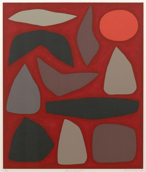 John Coburn, Study for Obiri Rock Painting 1993, synthetic polymer paint and pastel on paper, 32 x 43cm, Menzies, Sydney, 31 March 2022, lot 87.