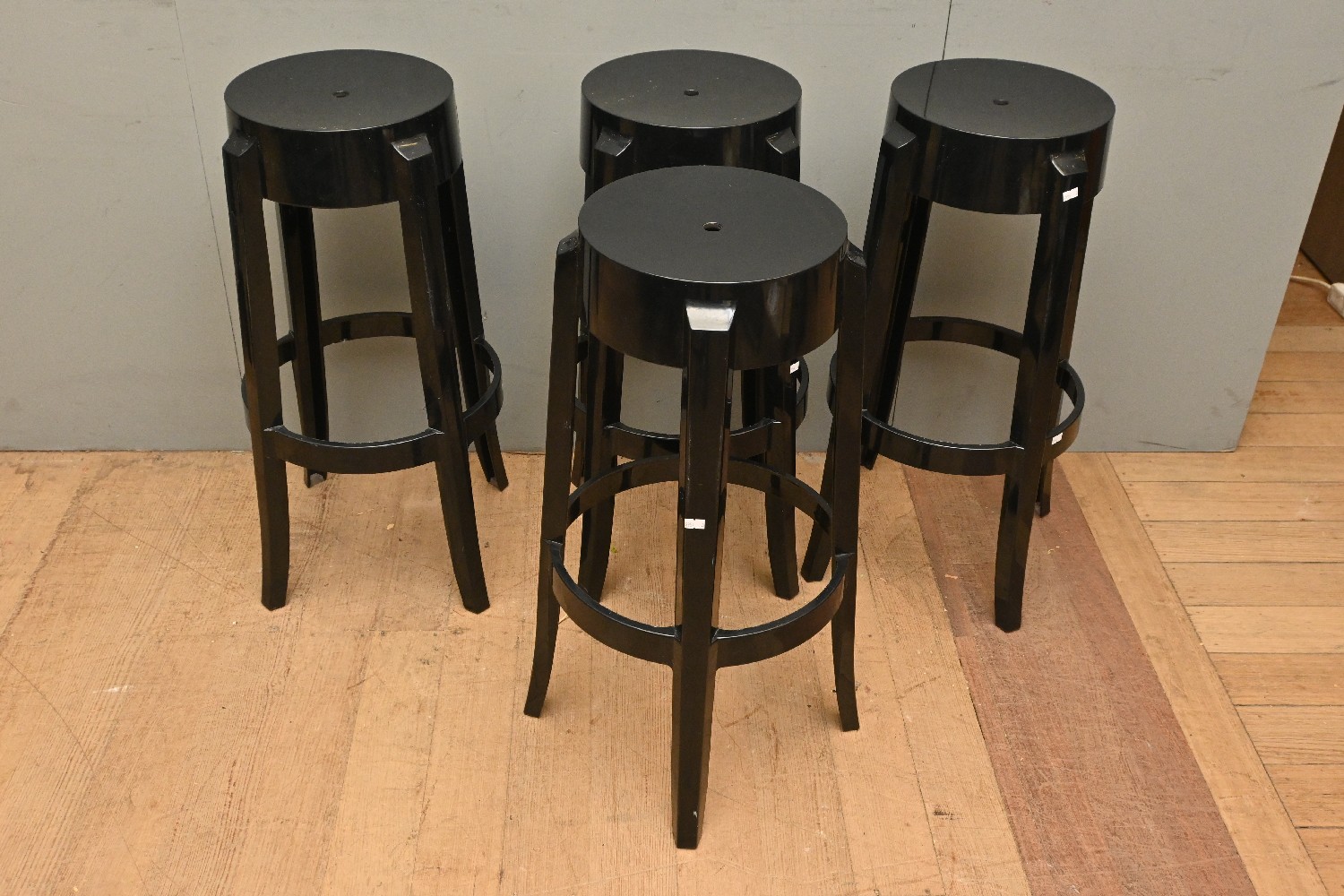 A SET OF FOUR PLASTIC BAR STOOLS (76H X 37DIA CM) (LEONARD JOEL DELIVERY SIZE: LARGE)