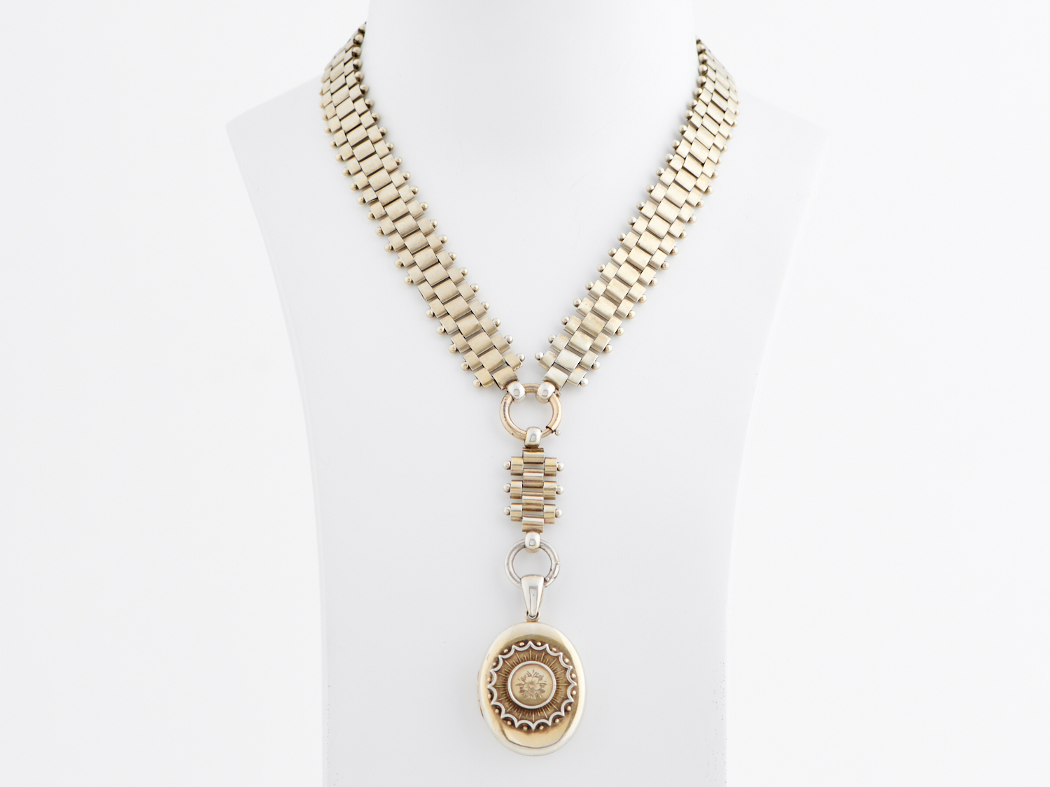 A VICTORIAN COLLAR AND LOCKET IN SILVER, 450MM