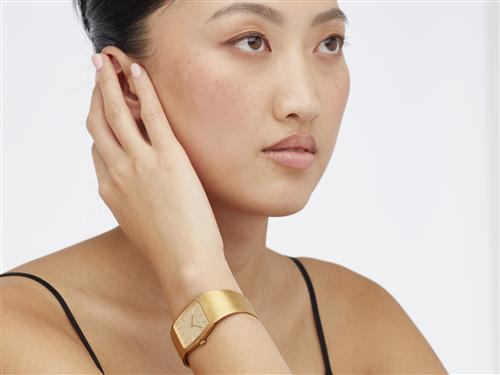 Closure: 18ct gold integrated textured mesh bracelet and clasp