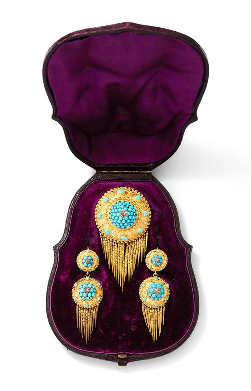 VICTORIAN TURQUOISE AND DIAMOND ETRUSCAN REVIVAL SUITE