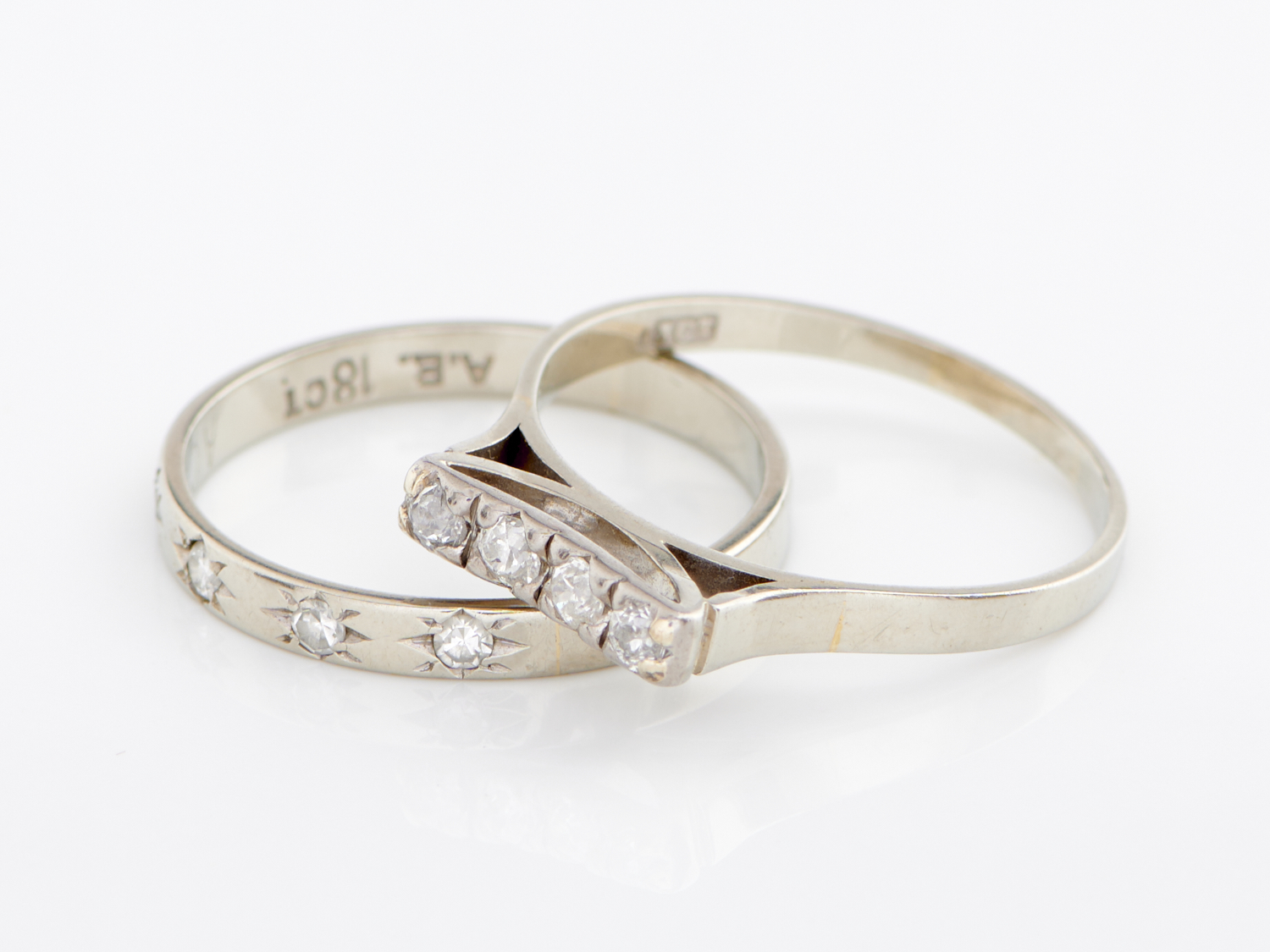 TWO DIAMOND SET BANDS IN 18CT WHITE GOLD, RING SIZES S AND T, 5.1GMS