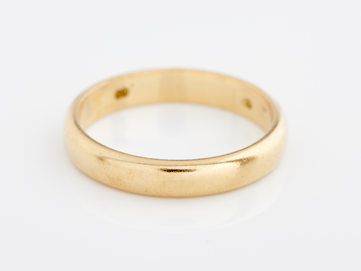 A BAND RING IN 18CT GOLD, RING SIZE T, 5.4GMS
