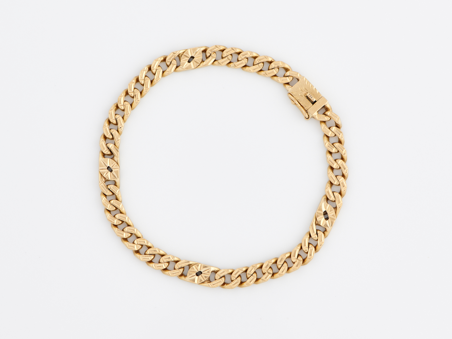 A CURB LINK BRACELET IN 18CT GOLD, 22.9GMS